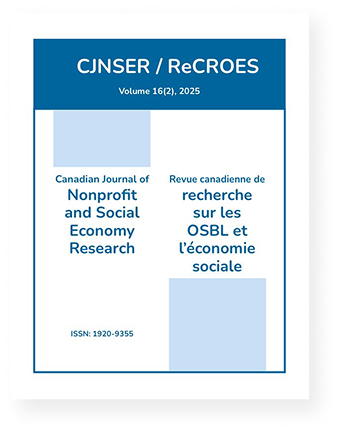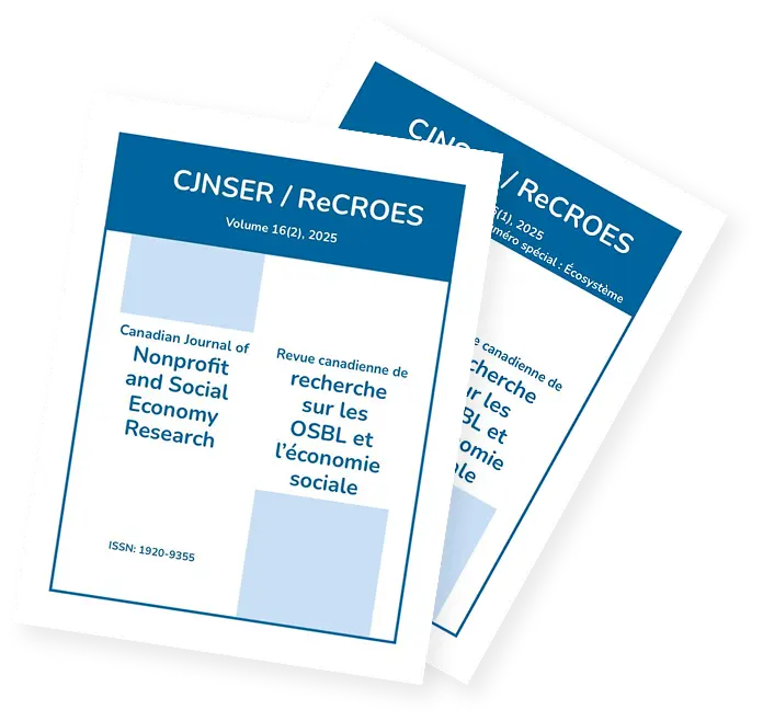 The Canadian Journal of Nonprofit and Social Economy Research (CJNSER) is a leading peer-reviewed, open-access journal dedicated to advancing knowledge of the social economy and nonprofit sector in Canada and beyond. The journal publishes original research articles, reviews, and case studies that contribute to theory, policy, and practice.